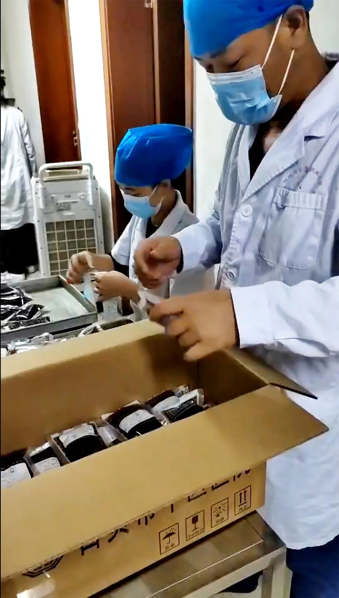 自贡市中医医院闻令而动,迅速抽调人员,组建党员先锋队,调集中药饮片,全力以赴开展“大锅汤”的熬制。制剂室现场,配药、熬制、分包、装箱……药剂科医务人员分工明确,加班加点,及时将首批100箱共计1万袋中药“大锅汤”打包装车,连夜发往内江,第一时间将热腾腾的中药汤剂发放到内江市民手中。
