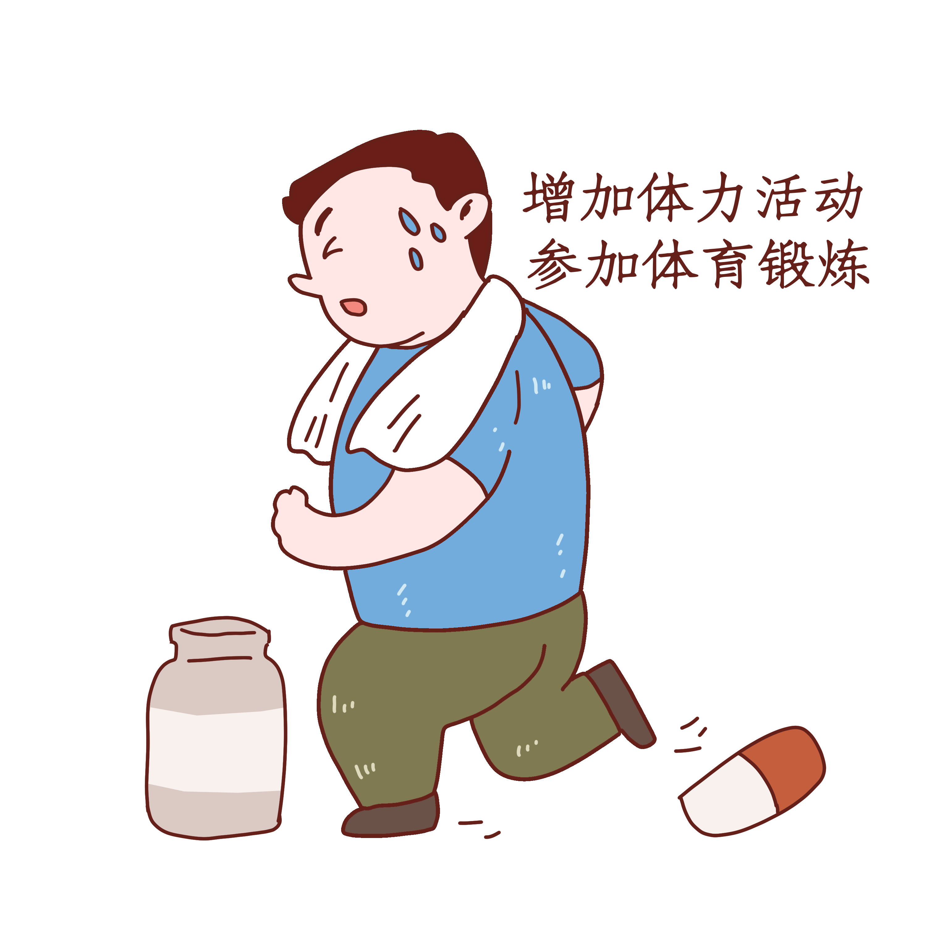 每周≥150分钟中等强度有氧运动,结合抗阻运动(老年人量力而行)。最好在餐后2小时开始运动,不可空腹运动。可配合按摩经络穴位起到调整阴阳、调和气血、疏通经络的作用,有助于增加胰岛素分泌,加速血糖的利用,还可以减少糖的吸收,并能改善微循环,调节血糖,还有改善糖尿病患者容易出现的“三多一少”、疲乏无力、神经衰弱、失眠等症状,预防并发症的发生。比如:足底胰反射区、手部胰腺反射区、耳部内分泌反射区、耳部胰胆反射区等进行按摩。
