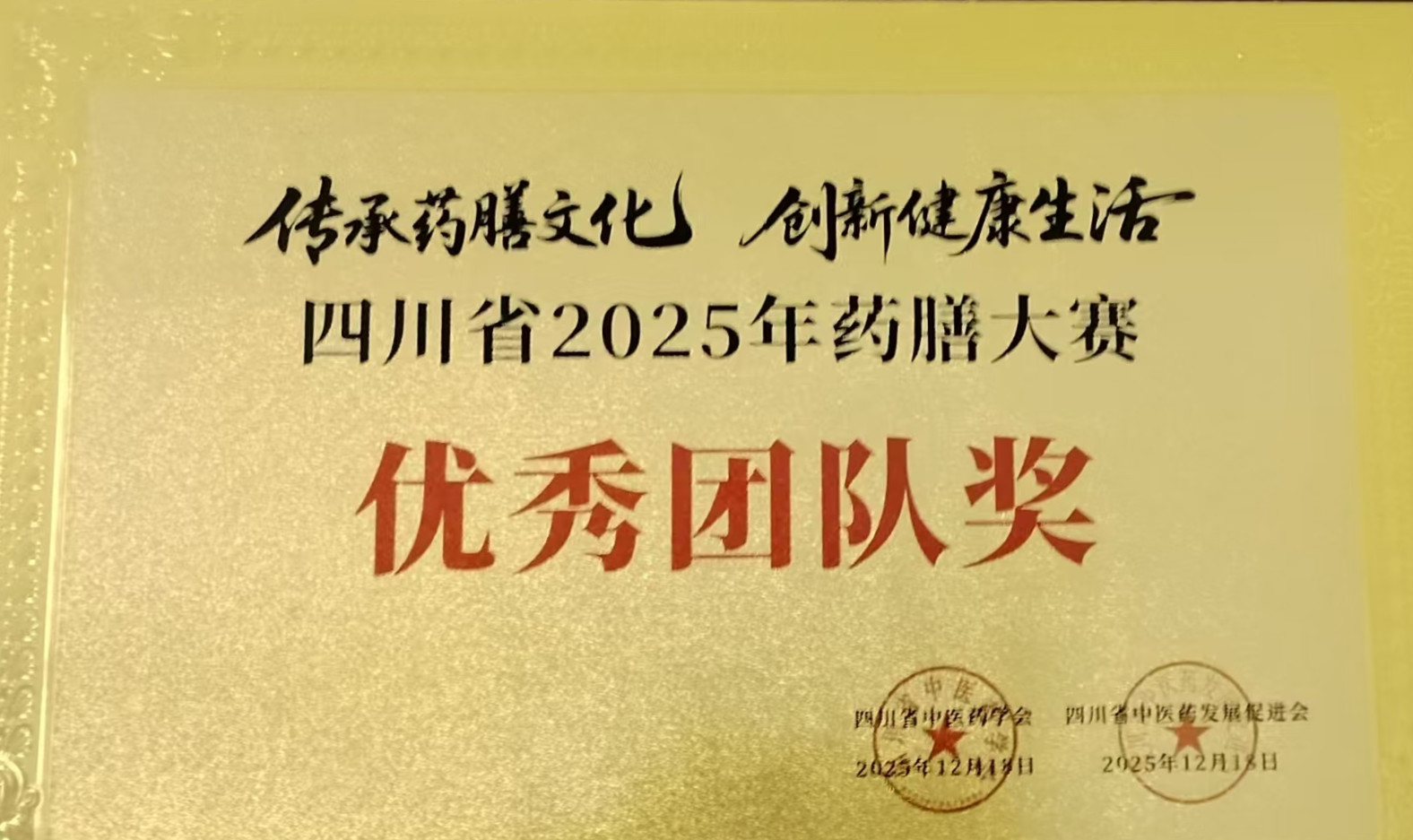 近日,在由四川省中医药管理局主办的“四川省药膳大赛”中,我院选派的“五韵膳养”团队,凭借其作品《五君子安咳宴》,从全省众多参赛队伍中脱颖而出,荣获大赛 “优秀团队奖”。
