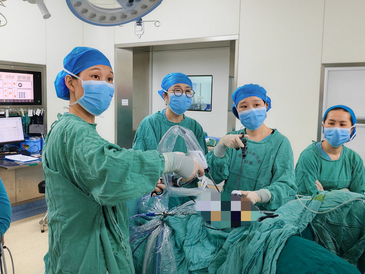 面对刘大姐的病情和巨大的子宫体积,传统开腹手术创伤大、恢复慢。妇科团队经过严谨评估,并与刘女士及家属详细沟通病情且征得同意后,决定采用腹腔镜微创技术为其进行全子宫切除术。
