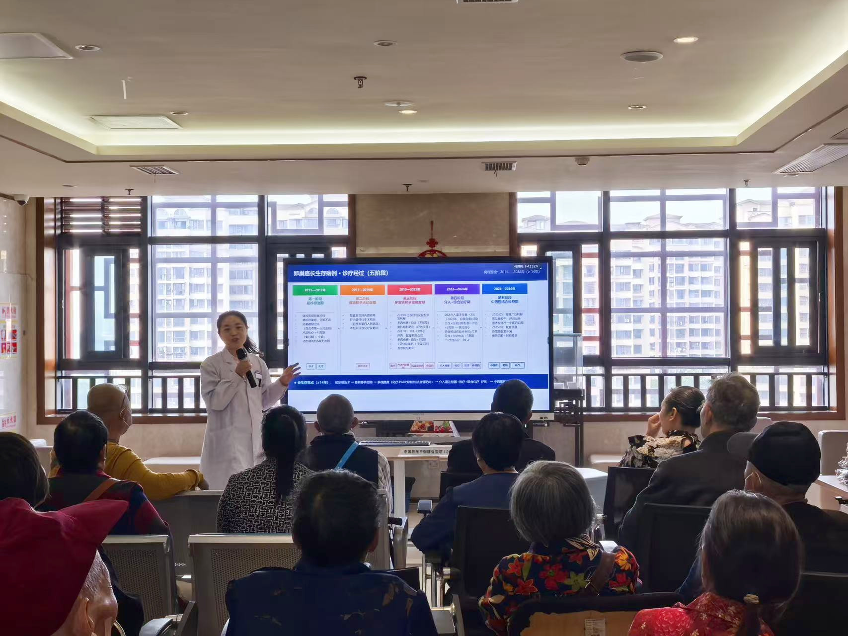 线下活动亮点纷呈、务实惠民。卧龙湖门诊2楼肿瘤血液科门诊开展为期一周的免费挂号活动,每日上午为群众免普通及专家门诊(特需专家除外)挂号费,通过网上预约、电话预约、现场挂号等多种方式,为群众提供便捷的肿瘤咨询、诊疗指导及个性化中医健康指导服务。4月16日下午,肿瘤血液科在卧龙湖院区举办科普讲座与健康咨询活动,专家结合中医药肿瘤防治优势,讲解肿瘤早防早筛早治要点及康复管理知识,现场发放科普资料和中医养生手册,为群众提供一对一咨询、中医体质辨识及免费血压测量服务,切实为群众答疑解惑。