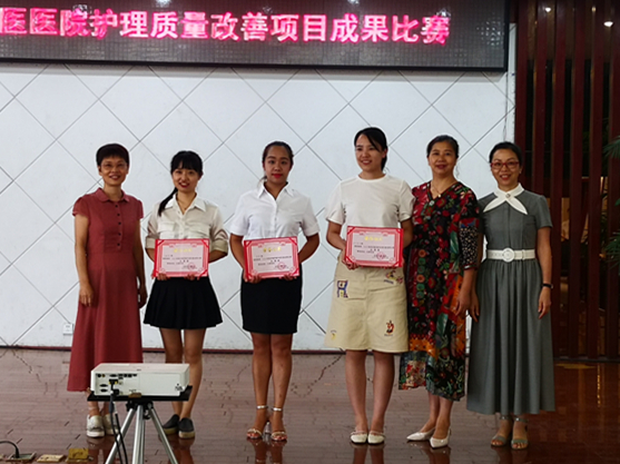 经过三个多小时的激烈角逐,评委从规范性、可行性、创新性等方面进行综合评价,手术室《多学科合作降低肛肠手术术前准备缺陷率》荣获一等奖;汇东分院内科《降低难免压力性损伤的发生率》、肛肠科《降低结直肠癌患者术后下肢静脉血栓发生率》荣获二等奖;外科《降低外科术后患者腹部管道固定缺陷率》、骨伤科《提高骨伤科患者对中医护理技术服务的满意度》、心脑血管科《降低住院患者口服地高辛缺陷率》荣获三等奖;其余为优秀奖。