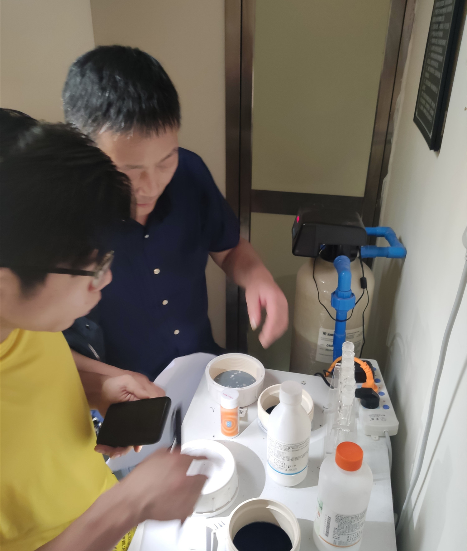 现场,总务科副科长周杰针对民营医院污水处理设备相对落后,人员技术力量薄弱的情况,从机制建设、人员管理、排放标准等几个方面进行了指导,技术员江波对设备使用、药剂配比、操作要点等情况进行了详细讲解。
