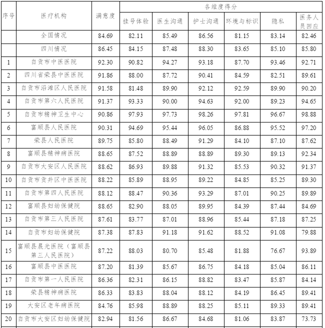 门诊患者满意度排名