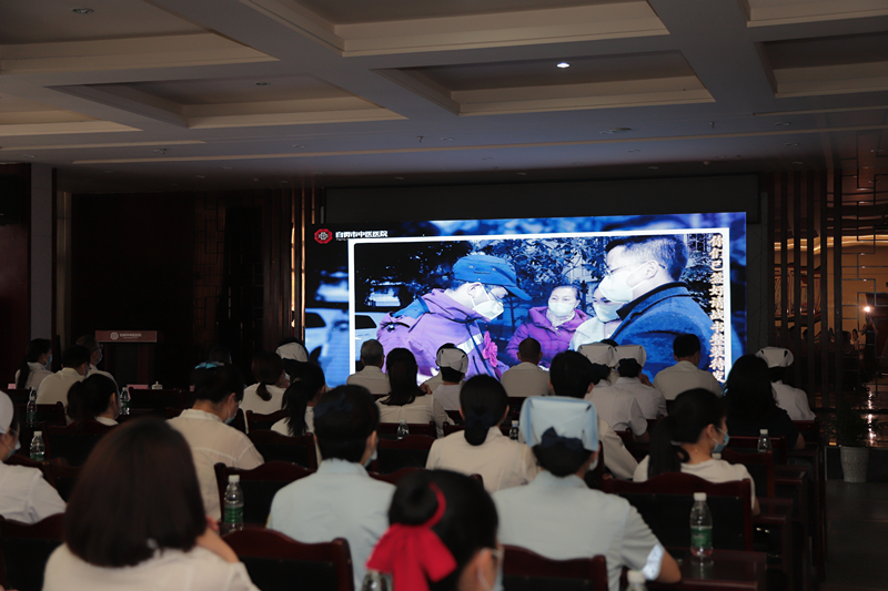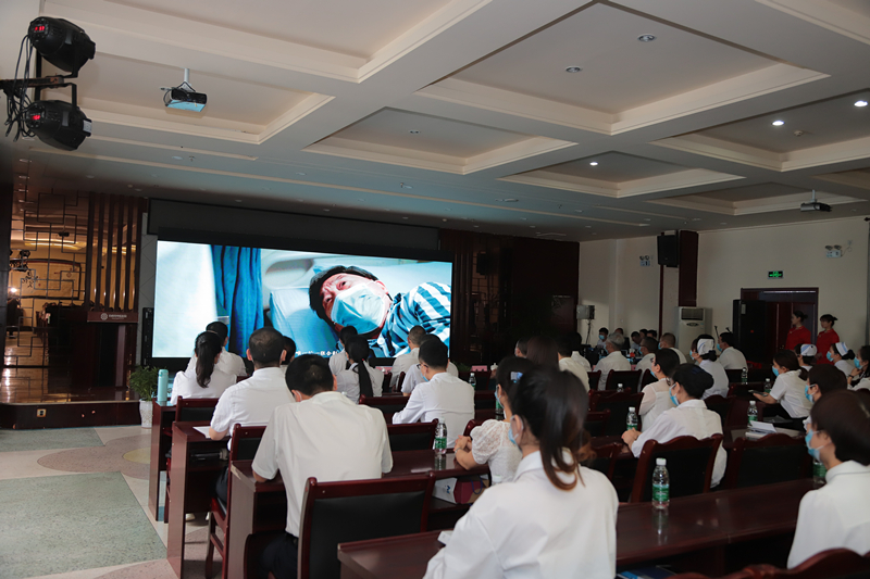 现场,大家首先共同观看了抗疫微电影《中医日记》、诗歌朗诵《英雄归来》。白衣执甲,逆行战疫;山河无恙,英雄凯旋。视频将大家带回到4个月前,那一幕幕感人的场景让在场的同志们热泪盈眶。