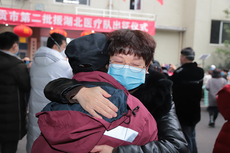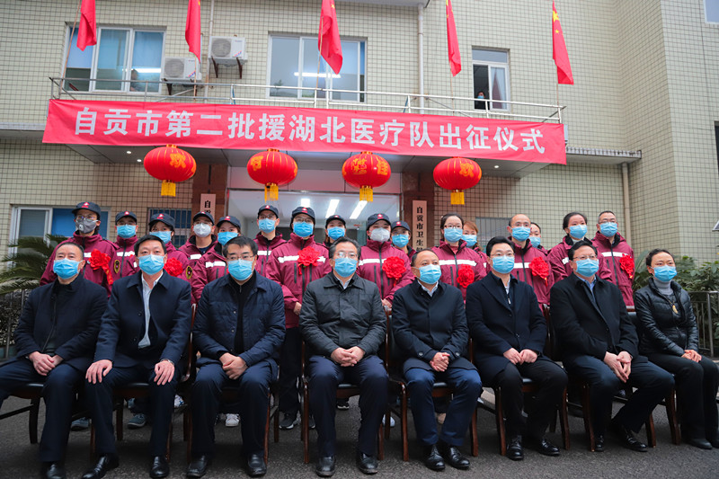 早上9点,20名自贡市第二批援湖北医疗队队员在市卫健委集合,整装待发。市委书记、市应对新冠肺炎疫情工作领导小组组长范波,市委副书记、市长、领导小组组长何树平来到现场为大家送行。