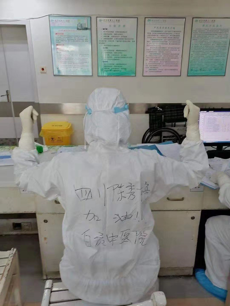 今天我们医院3个人排到了一个班口,穿好防护衣来到病房,护士长还表扬我们早早就去了,我们说“因为你们很辛苦,想让你们早些下班”。