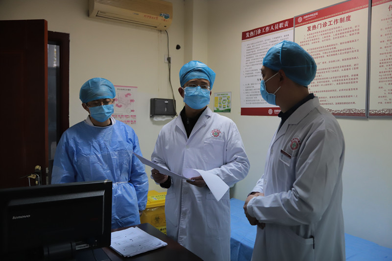 院长邓昭红带领医务科、院感科科室负责人,分别对三个院区的发热门诊、急诊科等科室进行了检查。
