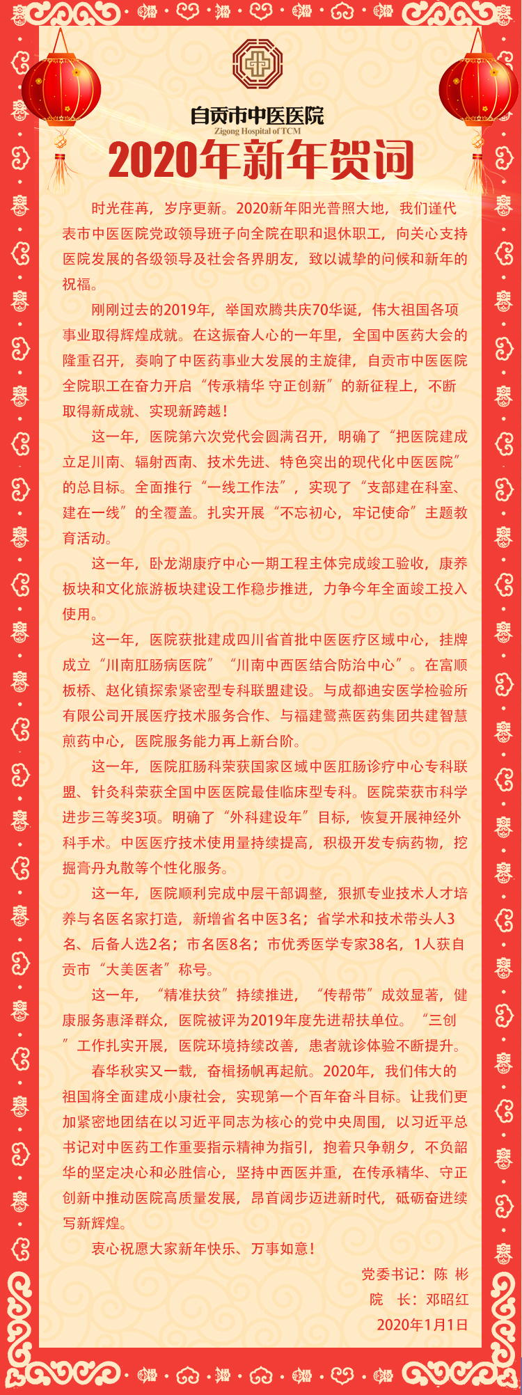 自贡市中医医院2020年新年贺词