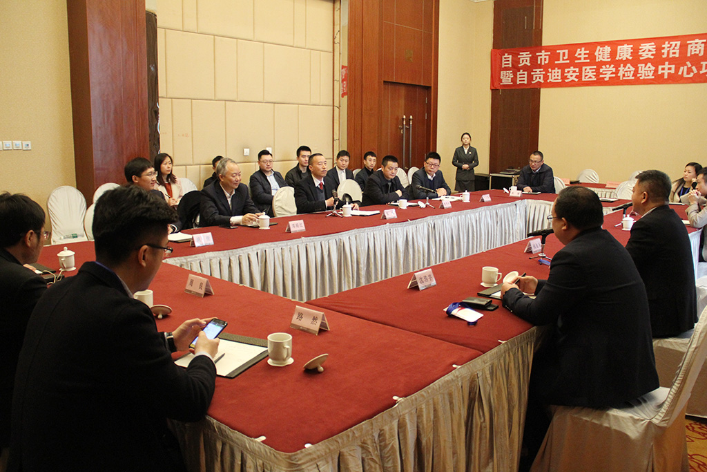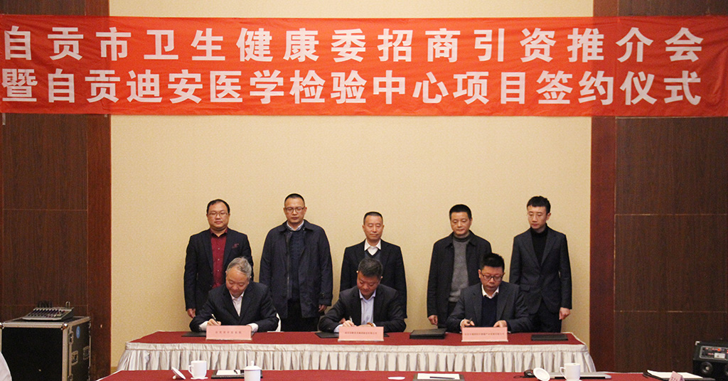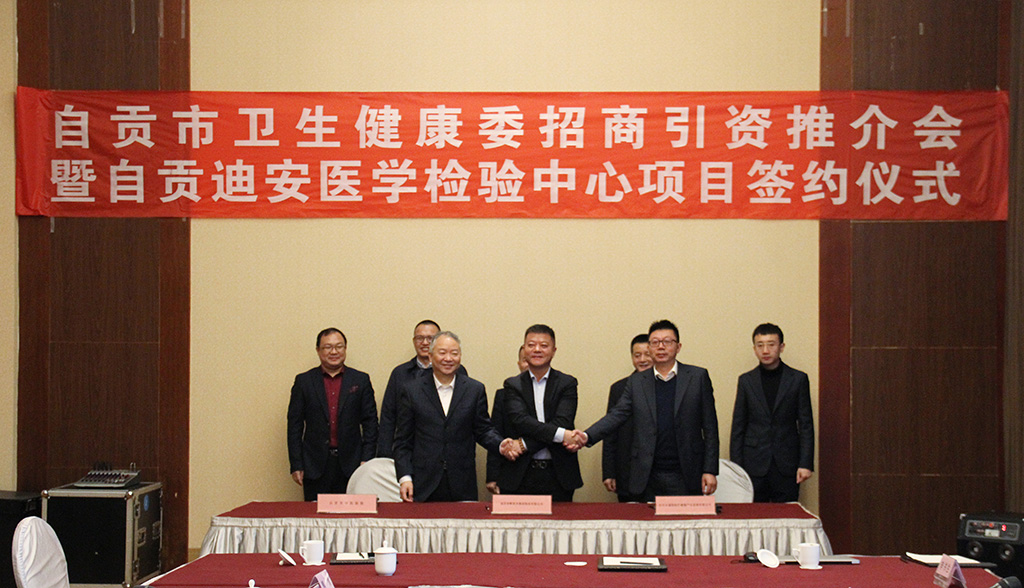 2月21日上午,自贡市卫生健康委招商引资推介会暨自贡迪安医学检验中心项目签约仪式在檀木林金陵酒店举行,自贡市中医医院、自贡市城投医疗健康产业发展有限公司、杭州迪安医学检验中心有限公司三方签订合作协议,全面推进战略合作,建设川南区域化医学检验中心项目。