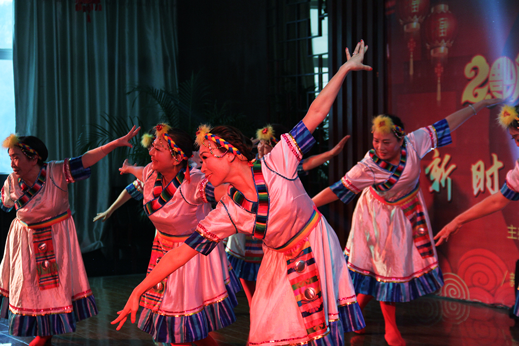 联欢会在《舞蹈串烧》中拉开序幕。华美的灯光、激昂的音乐、优美的舞姿,顿时把现场观众带入到欢乐喜庆的新年氛围中。整场晚会有歌舞、小品、三句半、诗朗诵、养生操等19个节目,形式多样,精彩纷呈,现场高潮迭起,掌声不断,处处洋溢着欢乐祥和的气氛。