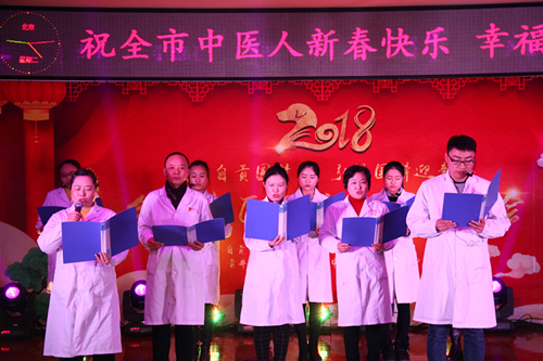 市卫生计生委副主任章成在致辞时首先向奋战在一线的全市医务工作者们致以节日的问候和良好的祝愿。章主任表示,过去的一年是自贡中医药发展建设过程中不平凡的一年,全市广大中医药人努力拼搏、勤勤恳恳、无私奉献,彰显了国医仁诚的优良传统。2018年,将是我市中医药事业发展的关键一年,他希望大家再接再厉,在十九大精神的指引下,努力振兴自贡中医药事业,造福更多人民群众。