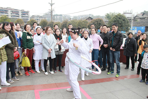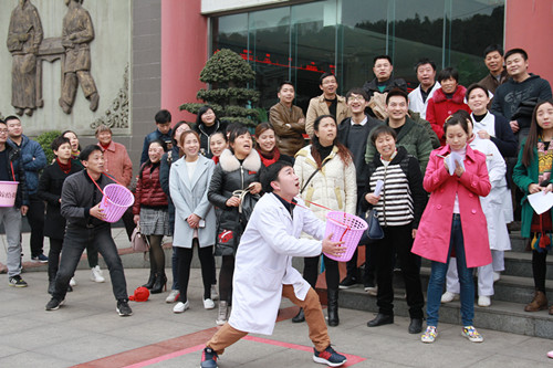 在"三八"国际妇女节来临之际,我院为了提高职工的身体素质,丰富医护人员业余文化生活。3月7日下午,医院举办了庆祝"三八"妇女节趣味活动。医院领导班子成员及全院各科室职工代表参加了活动。