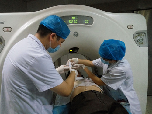 近日,我院中西医结合(肿瘤、血液)科完成了在CT引导下该科首例经皮肺穿刺活检术。该技术的成功开展,不仅填补了科室在该项领域的技术空白,也标志着科室开始迈入“介入时代”,同时也标志着科室在肺部阴影的诊断及治疗上再填“利器”。