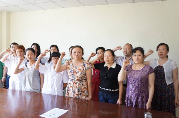 副院长王荧与一门诊支部党员一起重温入党誓词