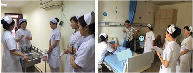 图为护理质量管理查房现场: