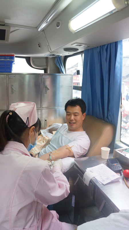 上午八点三十分,活动在院本部广场开始。广大职工早已自发排好了队伍,配合着工作人员完成填写表格、测量血压和验血等献血前准备工作。笔者在现场看到除了很多科室主任、护士长带头献血外,不少年轻职工他们也加入到了无偿献血的队伍中,而每一个人的脸上都洋溢着参与义务献血活动的自豪感和帮助他人的满足感。