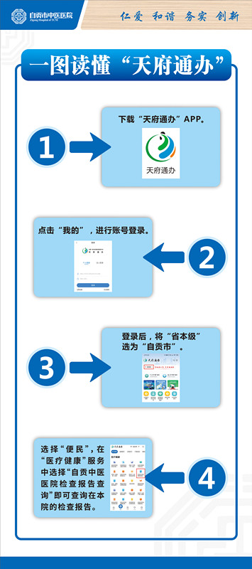 如何在“天府通办”上查询市中医院检查报告?一图读懂!