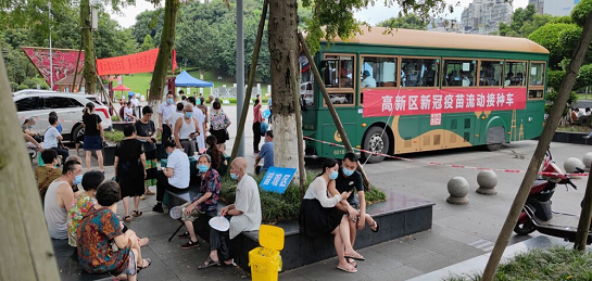 中心人员少,任务重,支部党员充分发挥模范带头作用,冲锋再前,攻坚克难。疫苗接种最高峰时,单人单日接种疫苗上千剂次,保质保量完成定点疫苗接种各项工作。与此同时,支部还与高新区管委会、自贡公交集团有限公司通力合作,利用下班和节假日,联合打造“新冠疫苗流动接种车”,让群众少跑腿,让疫苗多跑路,这一便民利民新举措得到了群众一致好评。截至8月11日,完成疫苗接种任务68587剂次,接种受种者45395人,社区上门采集核酸197人。