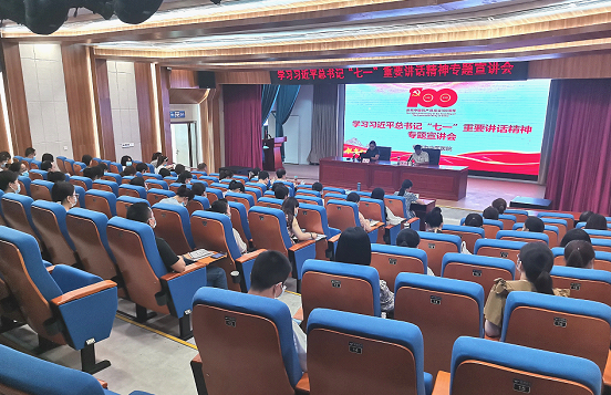 近日,自贡市中医医院党委书记陈彬主持召开学习习近平总书记在庆祝中国共产党成立100周年上重要讲话精神专题宣讲会,特别邀请到了四川轻化工大学马克思主义学院历史学王红副教授来院授课,全院党委领导班子、党支部书记、中层干部、各支部党员、积极分子和群众代表共计约120余人到现场聆听专家讲解。