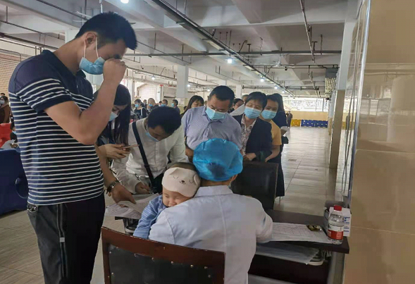 全员出动保障疫苗接种。新冠疫苗全民接种工作启动以来,市中医院丹桂社区中心联合党支部充分发挥党支部的战斗堡垒作用和党员的先锋模范作用,冲锋在前、坚守阵地,扎扎实实为人民群众筑牢防疫安全屏障。支部党员全部取消周末休息,不分中午、晚上,每天早上7点到岗,晚上直到当天疫苗全部接种完毕才下班。截止5月24日,在南湖社区卫生服务中心和梨园菜市场接种点已完成接种量合计10945剂,其中一天接种量多达到3158剂,一天下来,医务人员的手已快僵硬,但她们仍然活力满满地开展群众引导、疫苗接种、留观等工作。