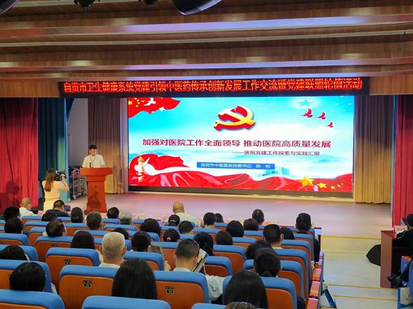 5月28日,自贡市卫生健康系统党建引领中医药传承创新发展工作交流暨党建联盟轮值活动在自贡市中医医院举行。市直机关工委一级调研员李绍彬、市卫健委机关党委书记文铭生等出席,市国资委、教育体育局、区县卫生健康局、市属医疗机构等140余人参加此次活动。