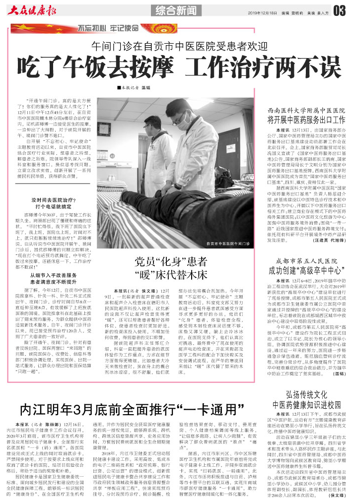 大众健康报:自贡市中医医院午间门诊受患者欢迎