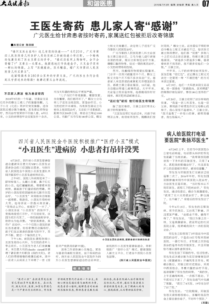 大众健康博:病人给医院打电话 要表扬“邓医生”