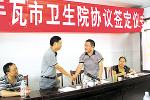 本报讯 为进一步提高乡镇卫生院的整体医疗服务能力和管理水平,使群众得到较高水平的基本医疗服务,努力做到派出一支队伍、培养一批人才、建好一所医院、服务一方群众,加强城市医院与农村乡镇卫生院的技术协调,实用共建共享、共同发展的医疗服务模式,市中医院继牵手仙市卫生院后,9月7日,由院长杨正春带队,副院长郭永清等一行6人,牵手沿滩区瓦市镇卫生院。在签字仪式上,双方代表纷纷发言,就管理、技术等方面的合作及下一步工作进行了深入探讨和细致安排。