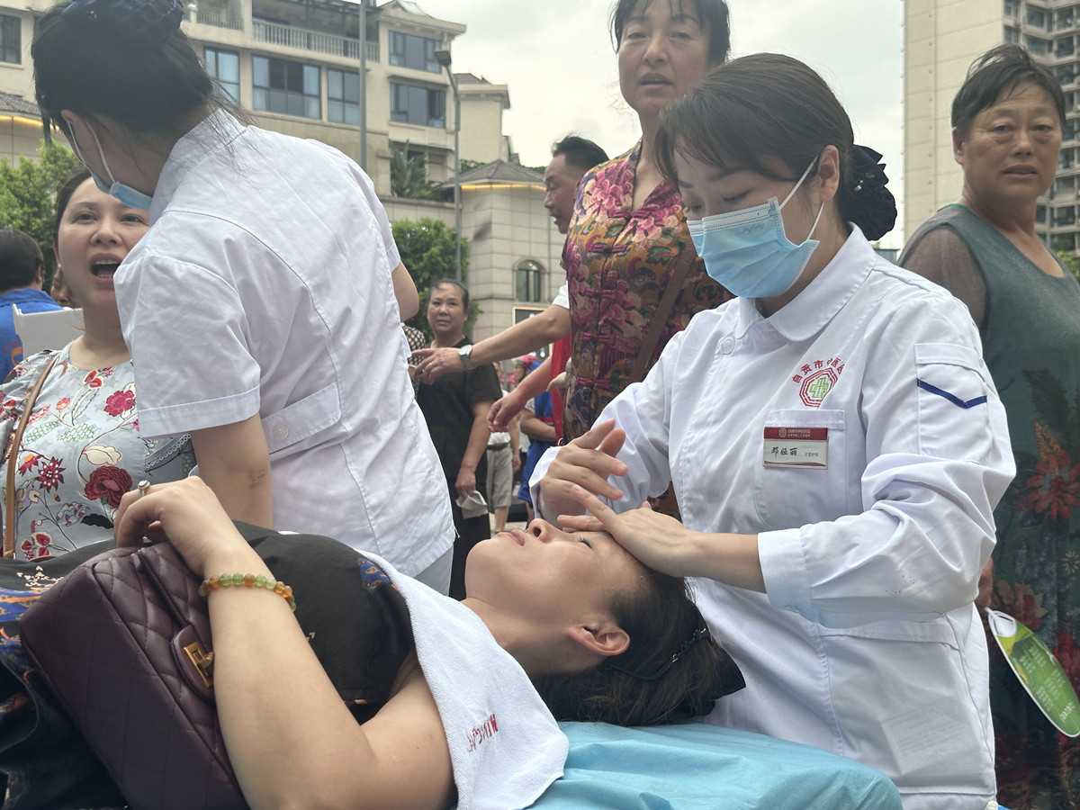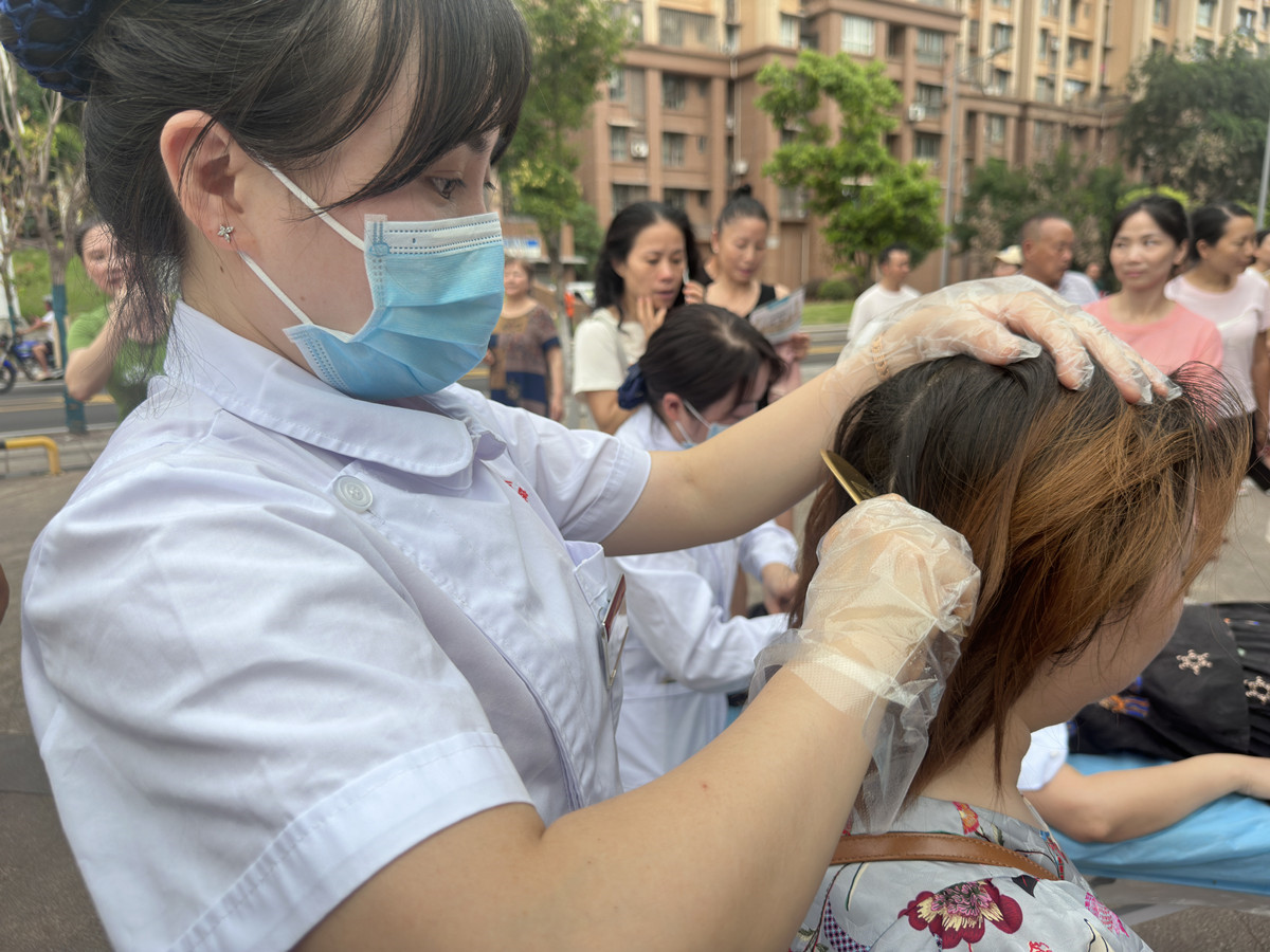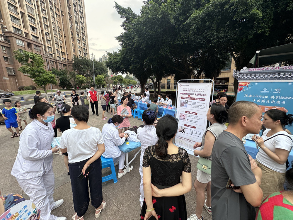 活动现场,广大居民还可以免费品尝八珍糕、酸梅饮、养颜茶、清凉茶等药膳及中药茶饮,解锁“喝出健康”的小妙招;体验穴位刮痧、杵针、中式面部桃花灸等多种中医适宜技术,缓解疲劳,调理亚健康;现场还设置了做香囊、猜灯谜等多个趣味环节,进一步丰富中医药文化夜市内涵。