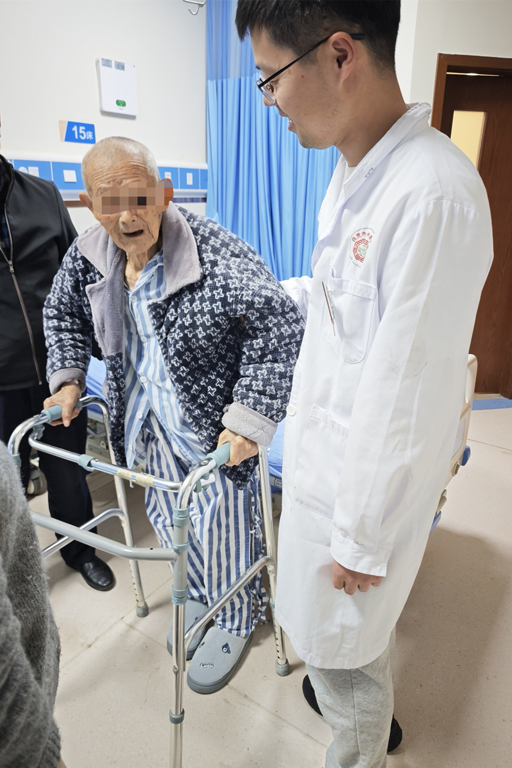 在骨科临床中,百岁老人股骨粗隆骨折被称为“人生最后一次骨折”,手术风险高、恢复难度大。近期,我院骨伤科团队成功为一位101岁老人实施骨折闭合复位+PFNA内固定术,术后1周老人即可借助助行器站立,用实力诠释“高龄不是手术禁区”。
