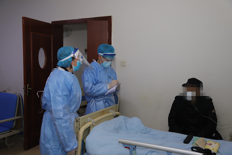 演练模拟推拿科病区发现新冠病毒核酸检测阳性病人,医务科逐级上报,全程模拟了现场处置、流行病学调查、核酸检测、病人转移、环境消杀等环节。