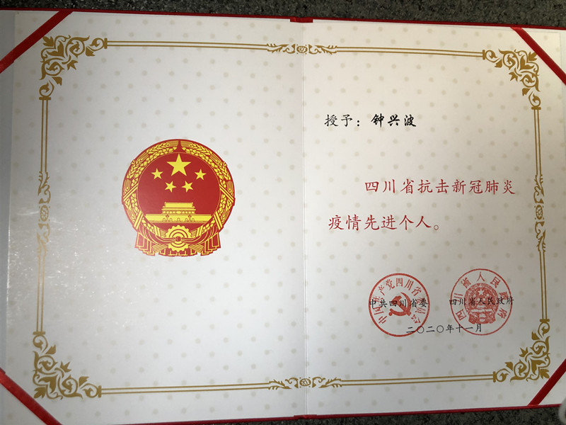 荣获“四川省抗击新冠肺炎疫情先进个人”