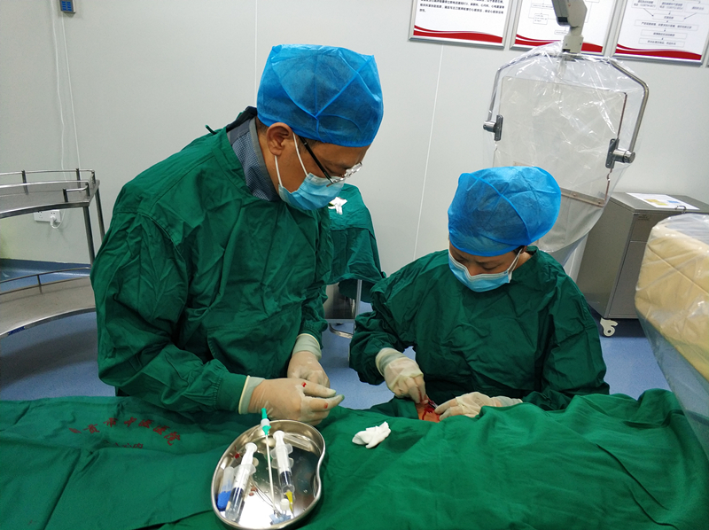 9月16日下午6点50分,心脑血管科主任王丽已经在DSA手术台上连续工作了4个多小时,这是她在为当天的第四个患者进行冠脉介入手术,由于长时间站立使她略显疲惫。头戴蓝色手术帽,口罩和围脖捂得严严实实,透过厚厚的遮挡屏,我们甚至看不清她的脸,但显而易见的是,身材娇小的她和身边高大威猛的谢涛副主任医师形成了“最萌身高差”。