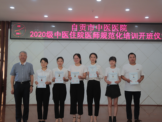 院长邓昭红为取得国家级中医住院医师规范化培训合格证书的6名学员颁发证书。