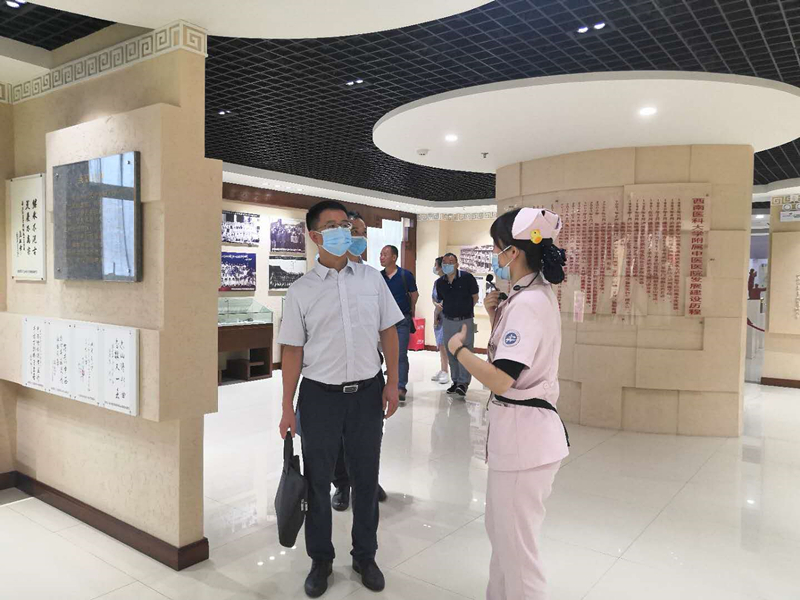 考察组到达目的地后在医务科科长和制剂室主任等人陪同下,参观了制剂大楼、门诊大楼、中医文化宣传教育基地中心。陈彬书记对西南医科大学附属中医院的基础建设和管理模式由衷的赞赏,表示很多经验值得借鉴。