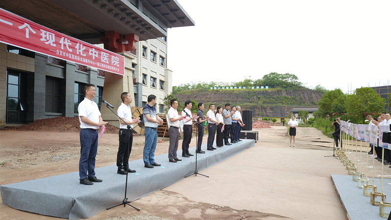 随后,党委委员、医院项目办工作人员代表何文勋,项目施工单位代表、自贡市汇东股份有限公司项目负责人林宇峰,合作共建意向单位代表太极实业集团有限公司财务总监陆晔、成都柯尼特科技有限公司副总经理唐前成分别作表态发言。何文勋表示,将勇于担当不卸责,鞠躬尽瘁不为名!为决战200天,共建一个现代化中医院,而不懈奋战!