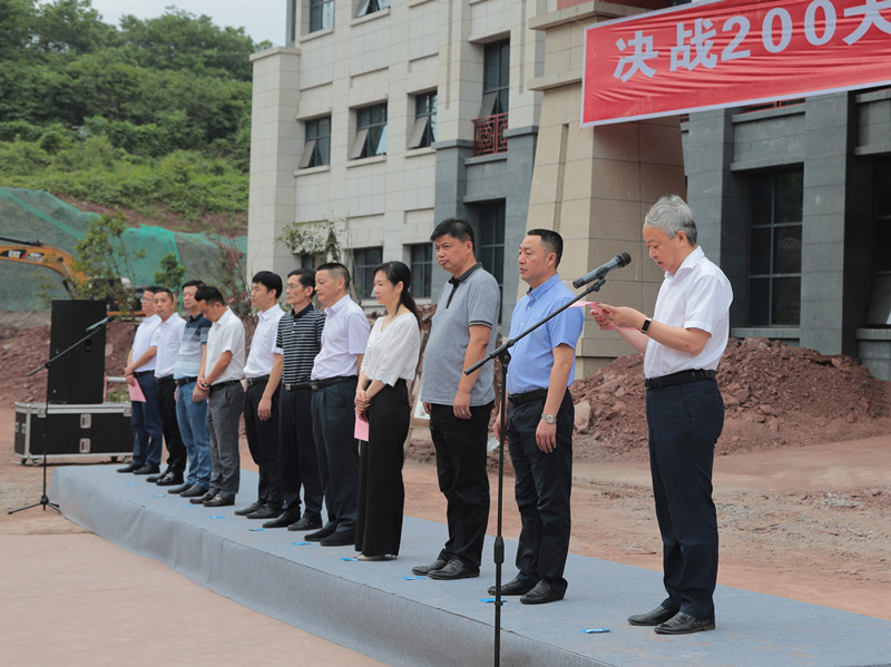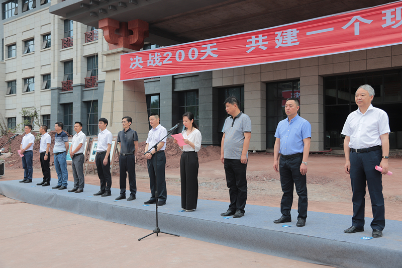 “认真贯彻市委市政府决策部署,严格执行工程安全质量规范,实干拼搏,抢抓时间,携手并肩、背水一战,决战200天,用激情成就梦想;决战200天,用汗水铸就辉煌;决战200天,用行动护佑健康;决战200天,共建一个现代化中医院!”现场,医院干部职工和项目设计、监理、施工单位等代表举起右手郑重宣誓。