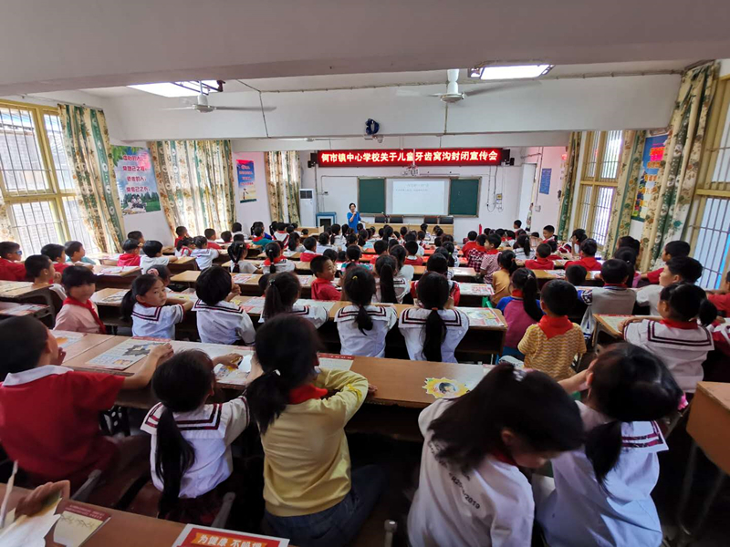 6月3日,市中医院、大安区疾控中心7名医护人员来到何市镇中心校为学生们进行了口腔窝沟筛查和口腔健康知识讲座。