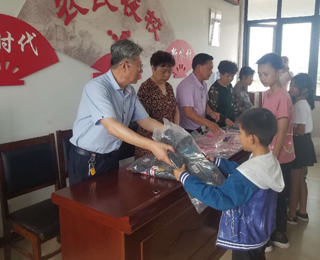 随后,五老志愿者们关切地了解了孩子们的生活、学习和健康情况,为他们发放了书包、防流感中药饮片、藿香正气液等中成药,并鼓励他们要克服困难,自强自立,努力学习,长大做一个对社会有用的人,以优异的成绩回报亲人、回报社会。