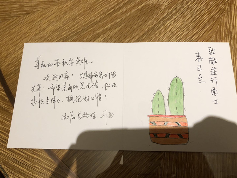 我们在隔离疗养地的生活跟住宿都很好,很感谢这边的工作人员为我们安排的一切。有点怀念在武汉和战友们一起工作的时候, 14天后就要回到各自的工作领域,希望大家有机会还能相遇。
