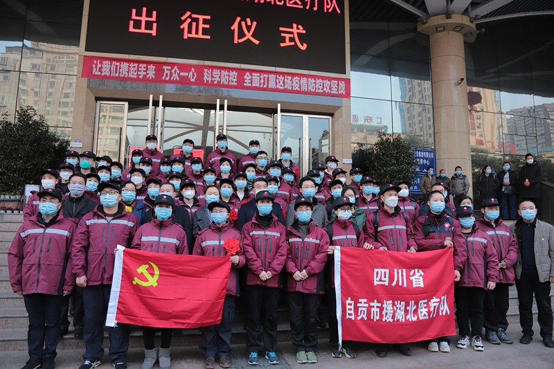 上午9点,市委副书记李国贵带队为自贡市第三批援湖北医疗队的54名队员举行简短的出征仪式。李国贵对队员们舍小家顾大家,奔赴湖北疫情一线表示敬佩和感谢,要求队员们发挥党支部战斗堡垒作用和党员先锋模范作用,互助互爱,做好防护,平安凯旋归来!