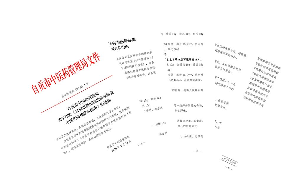 2月13日,自贡市中医药管理局印发《自贡市新型冠状病毒肺炎中医药防控技术指南》,《指南》分为中医药预防和中医药治疗两部分。在中医药预防部分中,根据自贡市气候特点,针对不同人群、环境,确定了四类中医药预防处方、居家防护建议以及重点场所防护的中医药预防新冠肺炎建议。