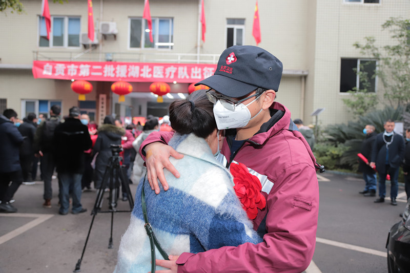 早上9点,20名自贡市第二批援湖北医疗队队员在市卫健委集合,整装待发。市委书记、市应对新冠肺炎疫情工作领导小组组长范波,市委副书记、市长、领导小组组长何树平来到现场为大家送行。