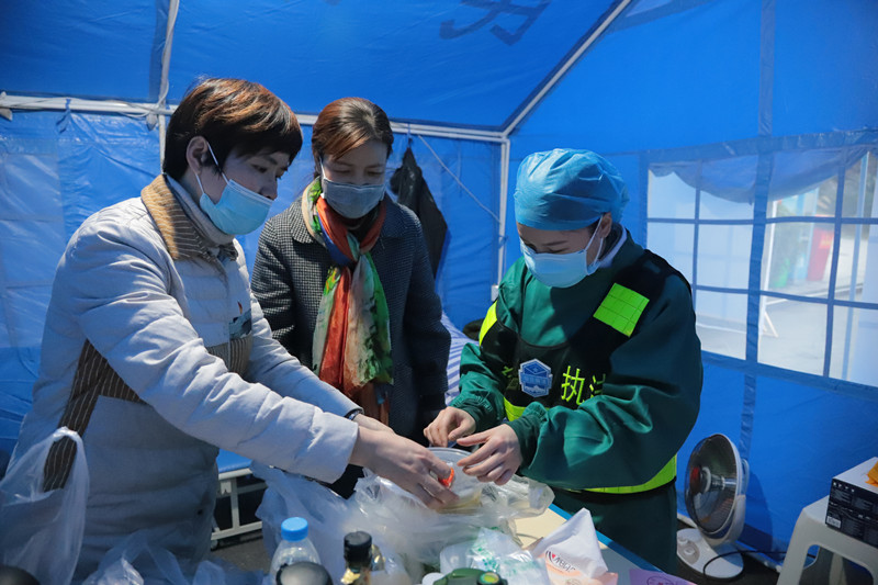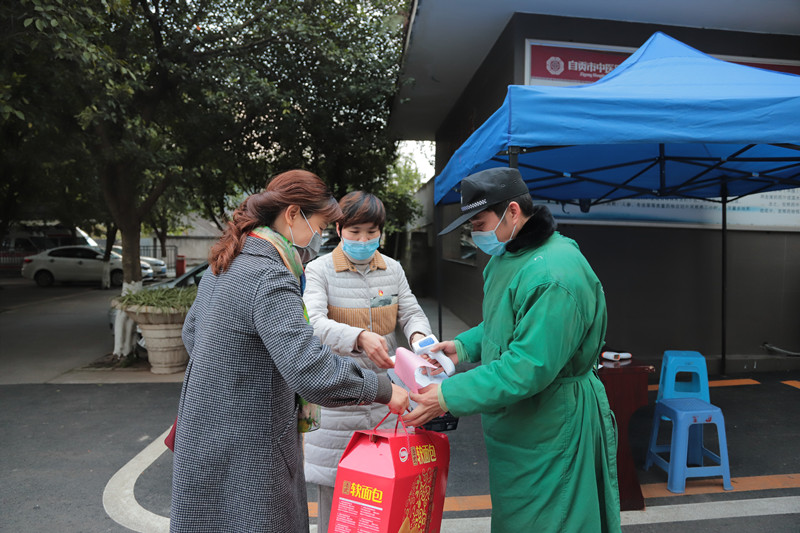 当晚,在大山铺和自贡北高速路口的体温检测点,大家还向坚守岗位的医护人员送上慰问品和热腾腾的鸡汤,向这些舍小家、顾大家,恪尽职守,无私奉献的职工们表示敬意!