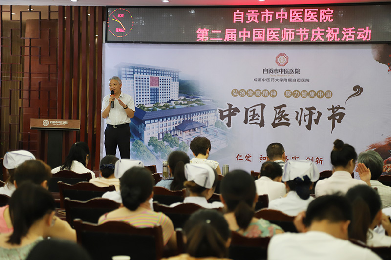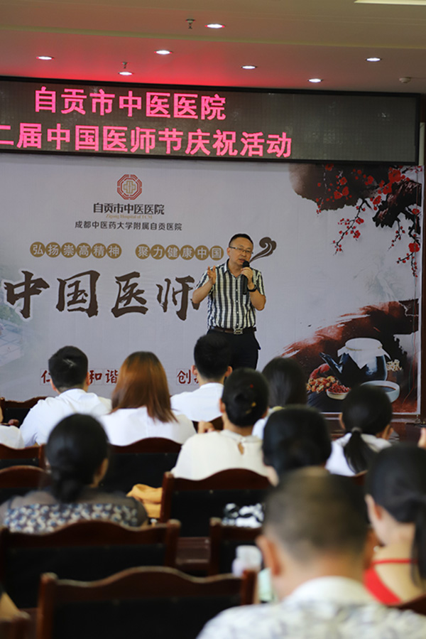 院长邓昭红则向大家介绍了即将投入使用的卧龙湖康疗中心建设过程,希望全院同仁携手拼搏为打造成为“立足川南,辐射西南部分地区的区域性三级甲等中医医院”的目标砥砺奋进,再创辉煌。