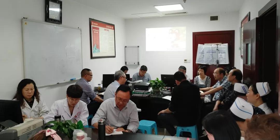 科室主任、护士长、技术顾问等分别对科室的工作情况、存在的问题和下一步科室发展发展规划进行了详细汇报。随后,院领导、职能部门负责人与科室医务人员一道认真分析科室现状,研讨科室发展思想,认真谋划发展路径,确定了“争创国家重点中医专科,全力打造区域性肛肠科”的发展目标。最后,邓院长对科室下一步工作提出要求:一是对标管理优技术,全力实现赶并超;二是优团队强服务,细分科室亚专业;三是强科研抓教学,医教研协同发展;四是抓质量显疗效,提高患者满意度;五是铸文化聚内力,建设有内涵的国家级重点专科。