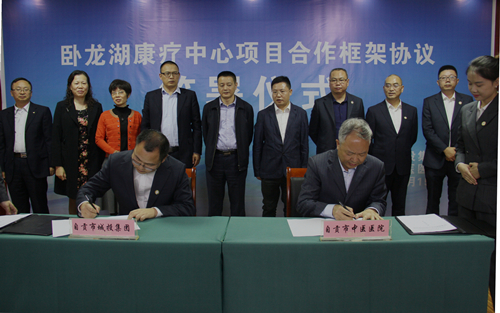 10月15日,自贡市中医医院、自贡市城市建设投资开发集团有限公司合作投资卧龙湖康疗中心项目框架协议签署仪式在市城投集团会议室举行,市卫生计生委、市中医医院领导、市城投集团相关领导参加此次签署仪式。