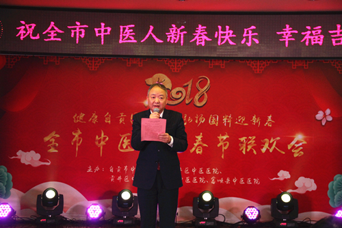 市卫生计生委副主任章成在致辞时首先向奋战在一线的全市医务工作者们致以节日的问候和良好的祝愿。章主任表示,过去的一年是自贡中医药发展建设过程中不平凡的一年,全市广大中医药人努力拼搏、勤勤恳恳、无私奉献,彰显了国医仁诚的优良传统。2018年,将是我市中医药事业发展的关键一年,他希望大家再接再厉,在十九大精神的指引下,努力振兴自贡中医药事业,造福更多人民群众。