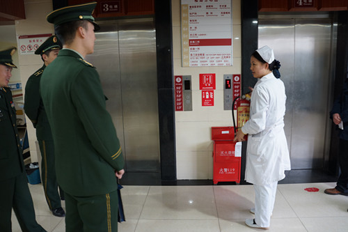 11月23日下午,四川省武警消防总队派出的安全检查组一行4人来到我院,对医院消防安全工作进行实地检查。医院副院长郭永清及相关职能部门负责人陪同检查。